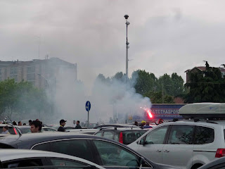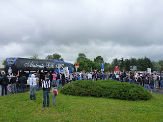 Spelersbus van Atalanta komt aan bij het stadion. |
