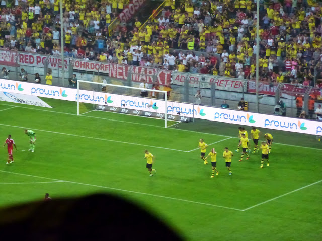 | In de 6e minuut kopt Marco Reus raak en komt Dortmund op 1-0 ! |